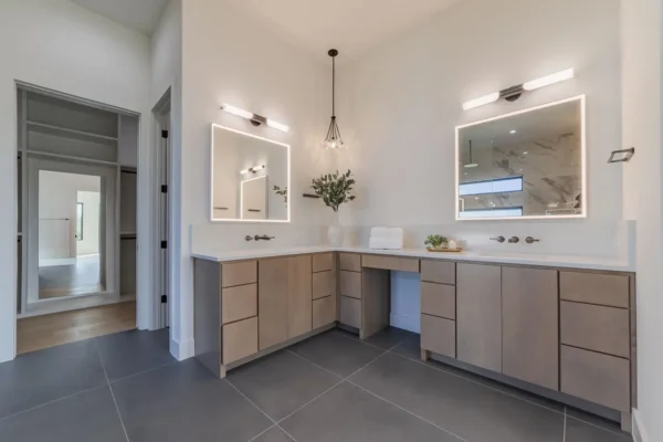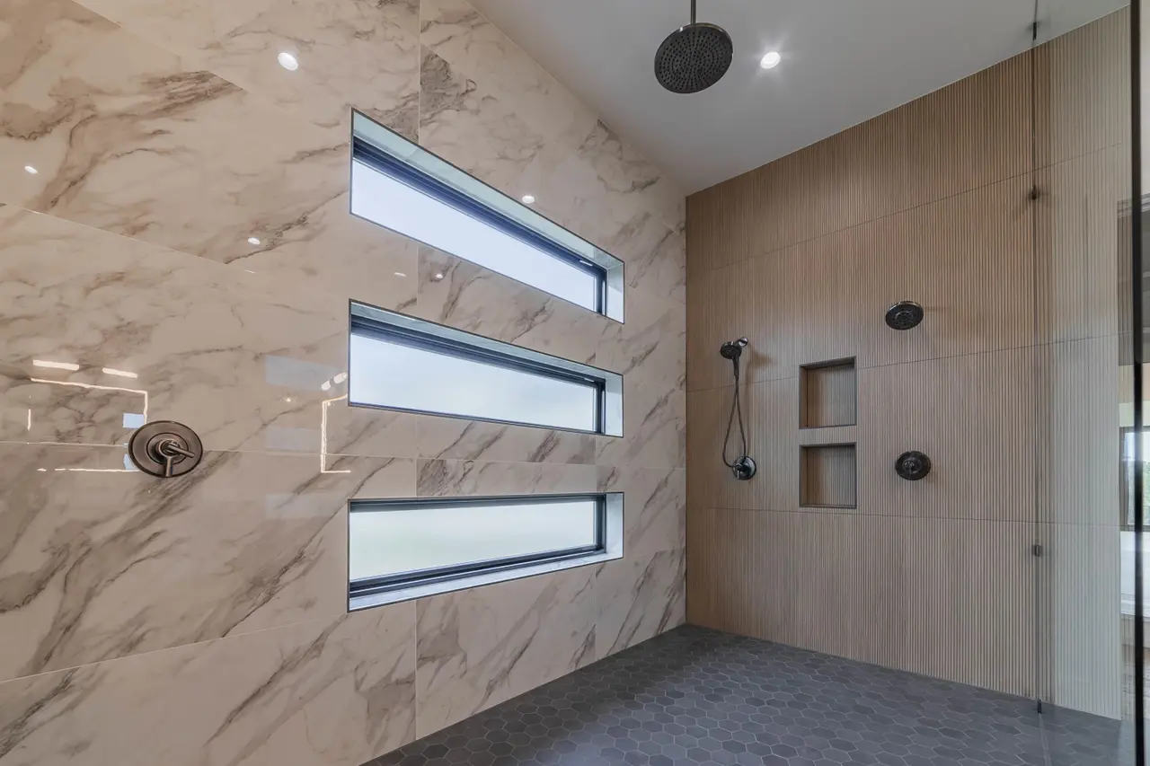 This home blends a proven layout with fresh, elevated design. A statement light in the front bedroom, dramatic fixtures in the entry and dining areas, and refined finishes throughout create a timeless yet bold aesthetic. The wet room features architectural tile on two walls, offering a spa-like retreat with a bold, thoughtful design.